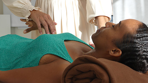 La séance se poursuit soit debout, soit allongé sur une table de massage. Vous restez habillé, uniquement déchaussé.